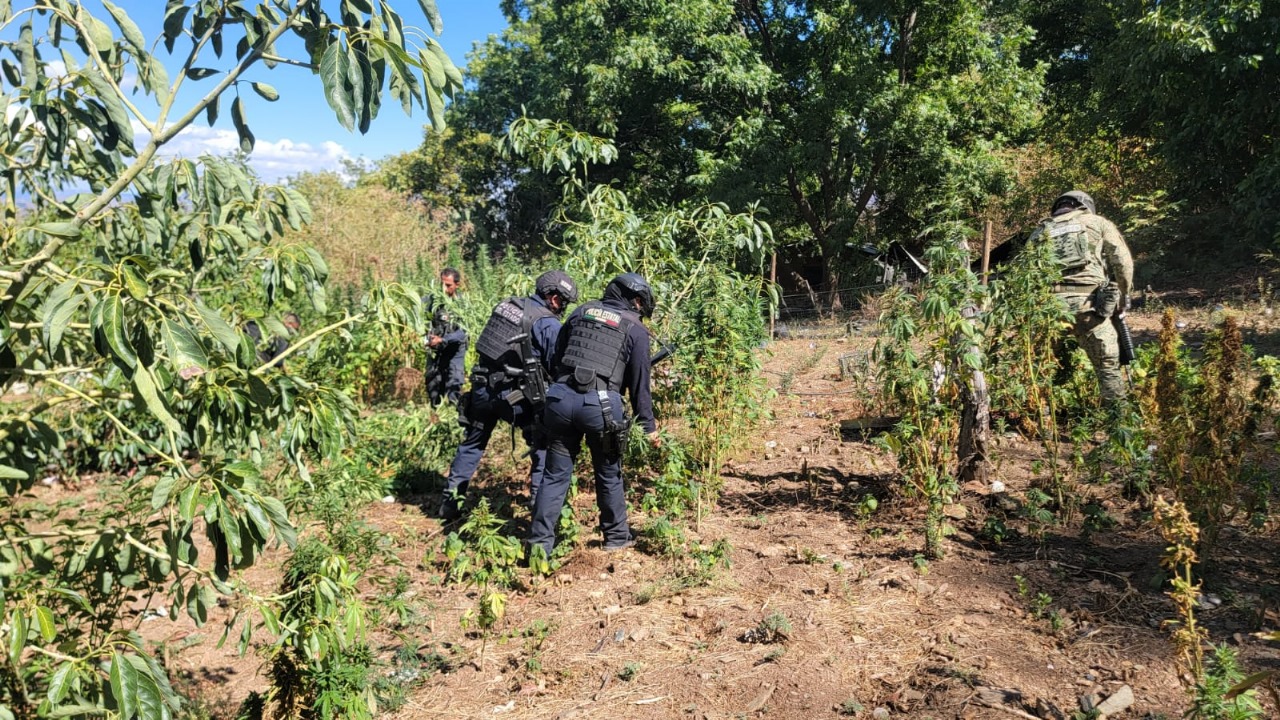 En una acción conjunta de seguridad, la Secretaría de Seguridad Pública del Estado (SSPE) llevó a cabo la localización y destrucción de un plantío de marihuana en la comunidad de Ciénega de Rodríguez, municipio de Moris, como parte de las operaciones de vigilancia y reconocimiento que se mantienen de forma permanente en la zona serrana.