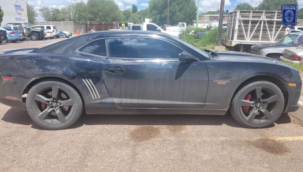 En otra intervención, en las instalaciones de Fiscalía los agentes ministeriales procedieron a la revisión de un vehículo Chevrolet, Camaro modelo 2011, color negro, con placas de circulación del estado de Chihuahua. Al cotejar la información de los números de serie en las diferentes plataformas de búsqueda, se encontró que contaba con reporte de robo del día 24 de junio del 2025 en ciudad Juárez, Chihuahua.