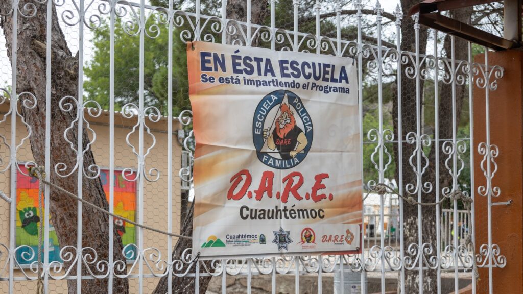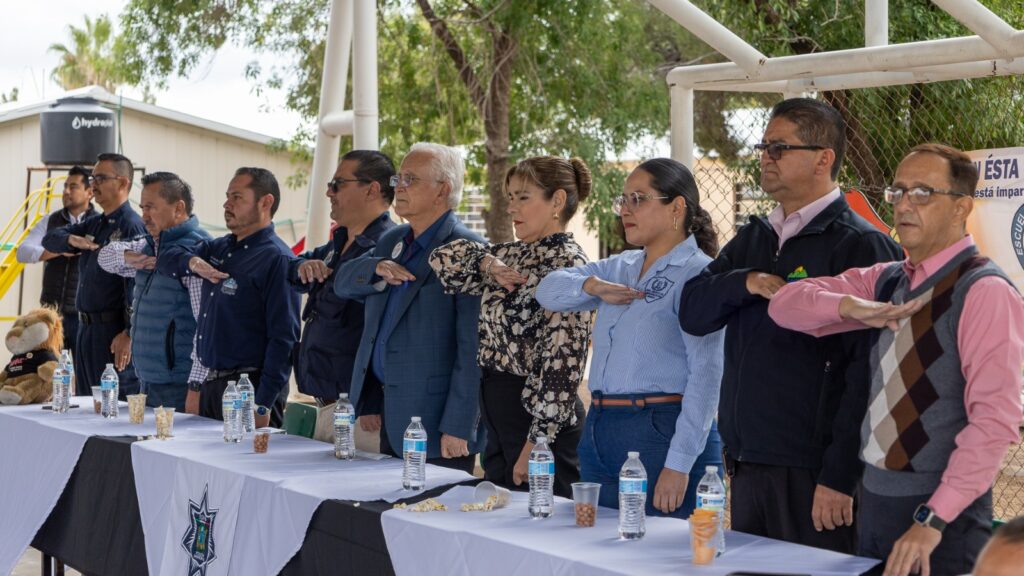 Cuauhtémoc, Chih.- Con la participación de estudiantes, docentes y autoridades municipales, este lunes inició formalmente la Generación 13 del programa D.A.R.E. en la primaria Abraham González, ubicada en el seccional de Anáhuac. El evento contó con la presencia del Presidente Municipal, Elías Humberto Pérez Mendoza, quien dirigió un mensaje a las niñas y niños, resaltando la importancia de aprender a tomar decisiones responsables.