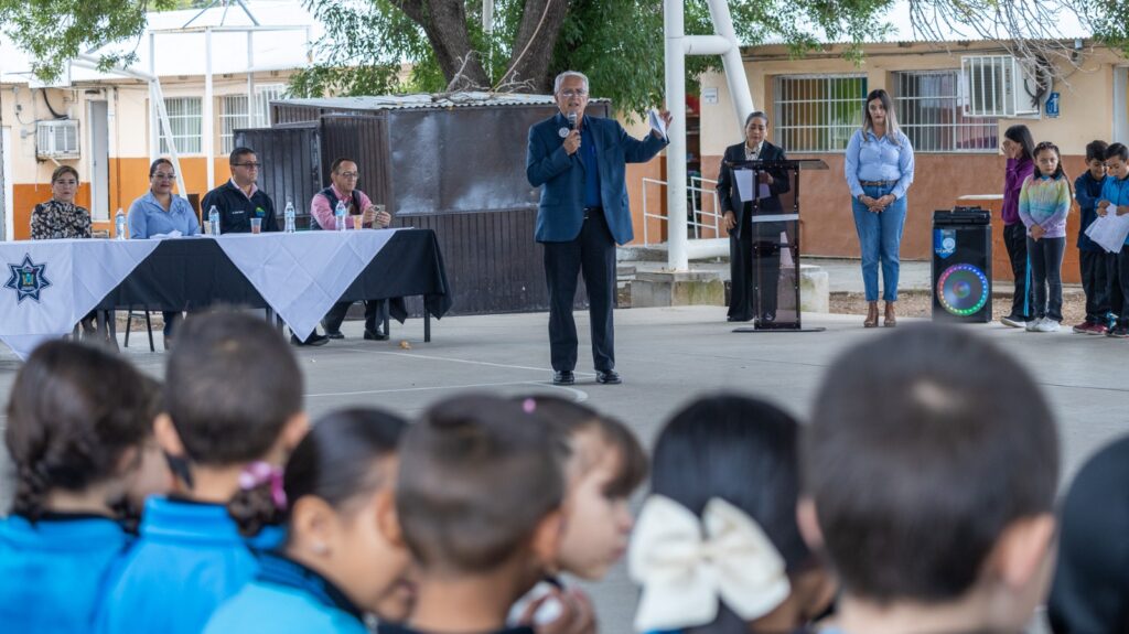 “Recuerden siempre que la prevención empieza desde pequeños: cada vez que eligen cuidarse, estudiar, jugar sanamente y respetar a los demás, están construyendo un camino mejor para ustedes y para su familia.”, expresó el Director de Seguridad Pública y Vialidad Municipal, Licenciado Rafael Ernesto Cavazos Aragón.
