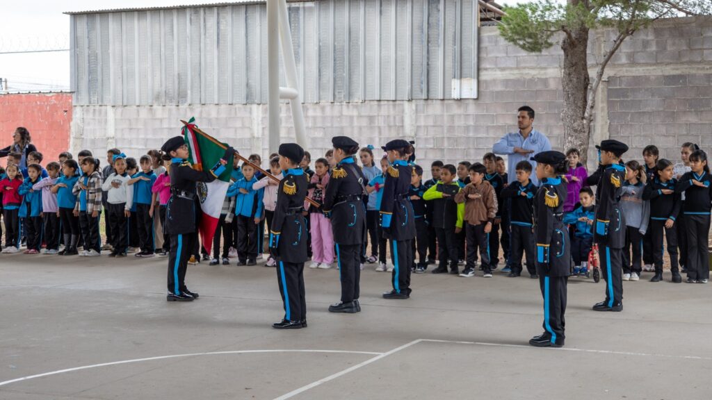 Previo al arranque del programa, los estudiantes de 4° “B” encabezaron los Honores a la Bandera, acompañados por la escolta y banda de guerra de la misma escuela, en un acto cívico que enmarcó la jornada.