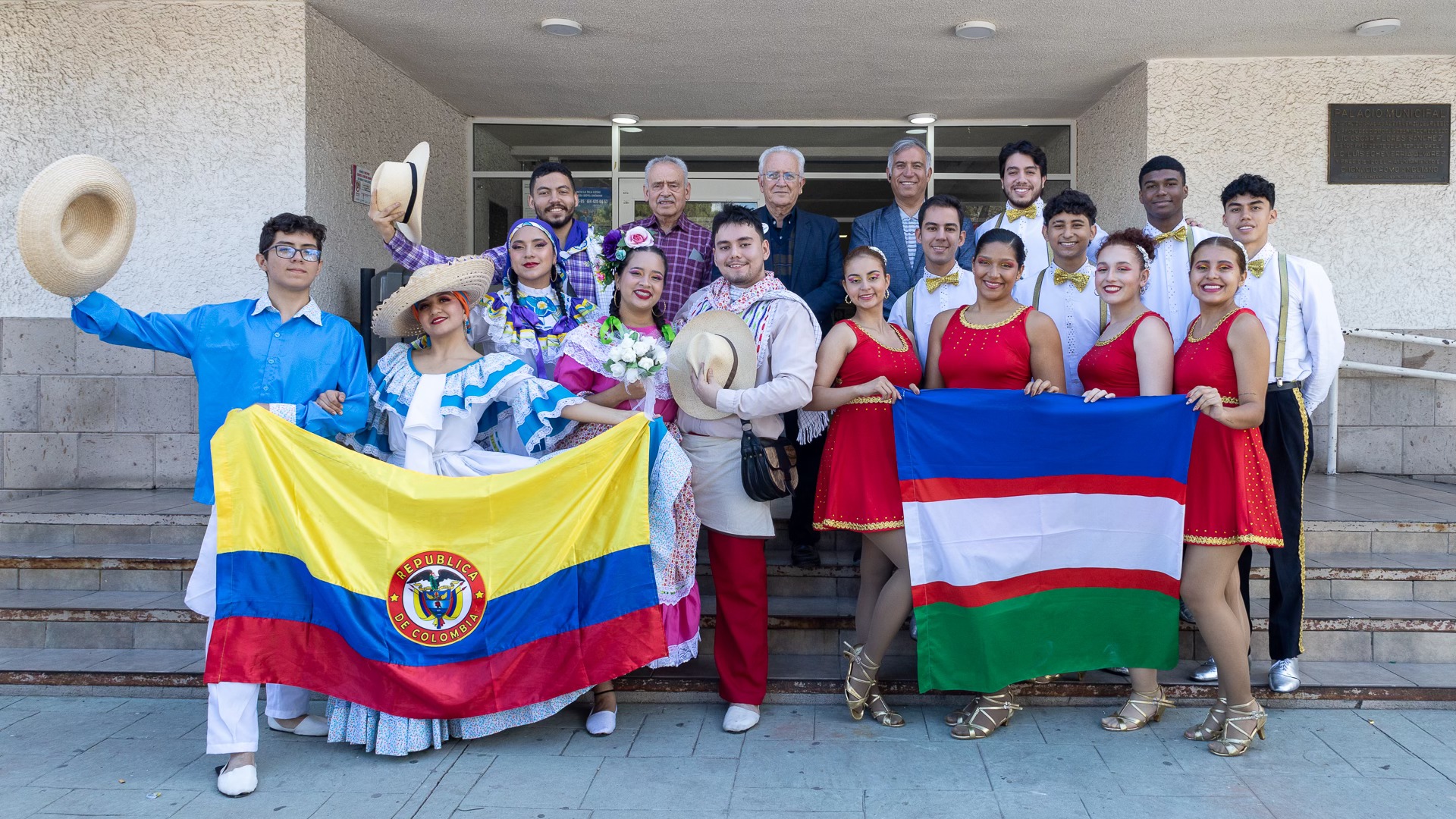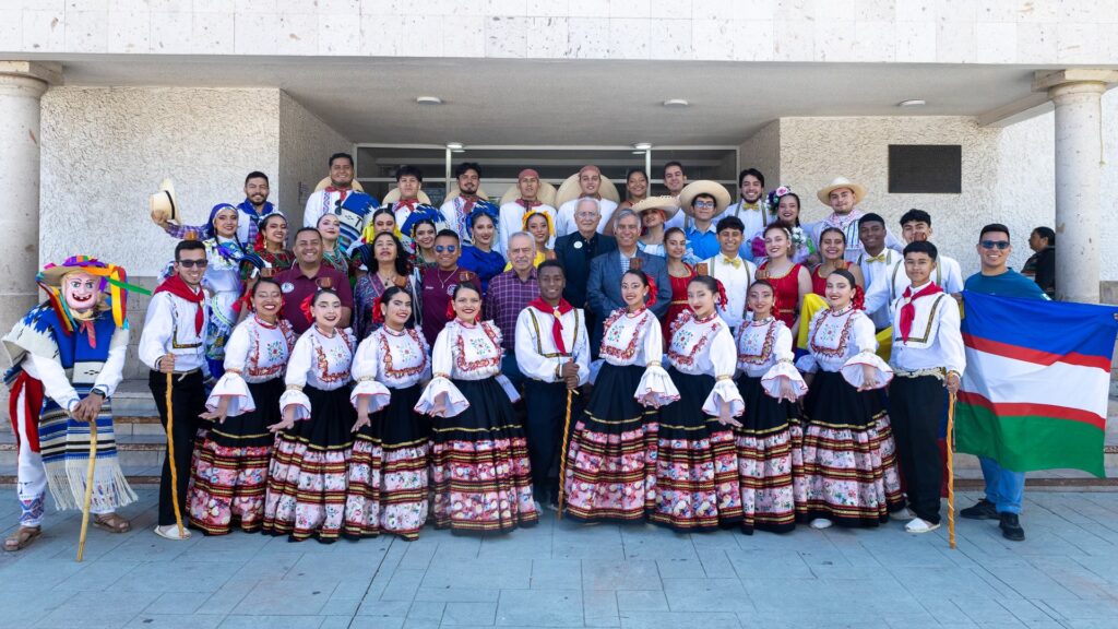 Cd. Cuauhtémoc, Chih.- Grupos de danza procedentes de Colombia y Morelia, Michoacán, visitaron al alcalde Beto Pérez, quien les dio la bienvenida a Cuauhtémoc, sede del 14° Festival Internacional “Amigos de la danza 2025”, el sábado 4 de octubre