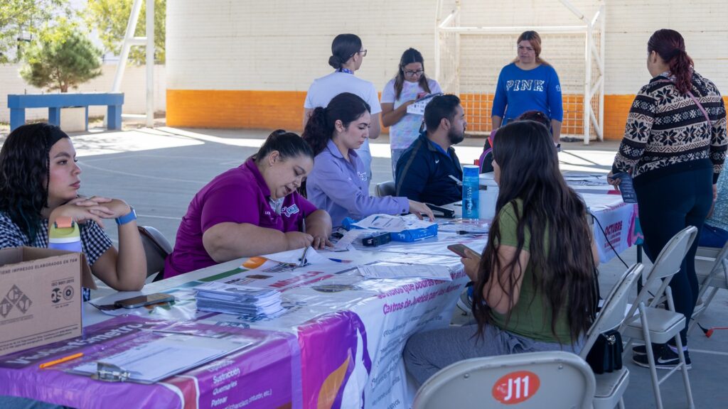 Cd. Cuauhtémoc, Chih.- Se realizó la primera Feria de Servicios de Salud para las Mujeres, con motivo del mes rosa y la prevención contra el cáncer de mama y cérvicouterino. Se llevó a cabo en la primaria Tres Culturas, en la colonia Los Alcaldes.