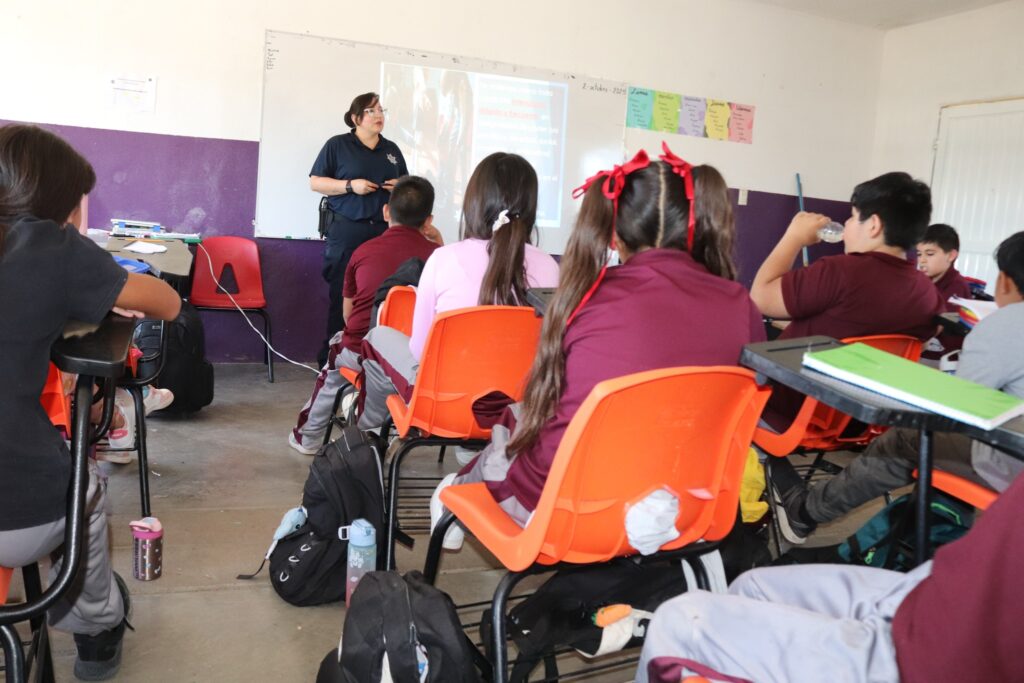 Durante la actividad, las agentes, Policía Primero Melisabeth Quezada y Policía Segundo Aidé Estrada Sosa trabajaron con estudiantes temas relacionados con la prevención del acoso (bullying) y la violencia escolar, así como la violencia de tipo sexual, brindando herramientas para identificar conductas de riesgo y fomentar la denuncia ante situaciones que vulneren su integridad.