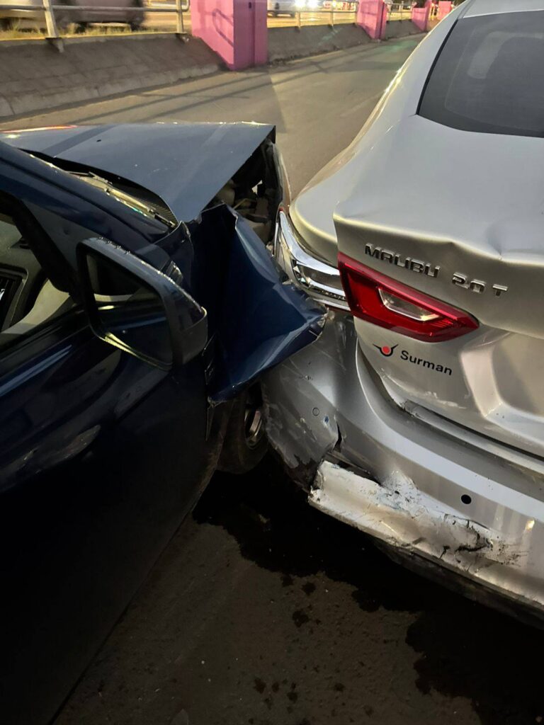 En el lugar se localizó un vehículo Ford Focus, color azul, modelo 2008, con placas ESW273A, que habría impactado contra un automóvil Chevrolet Malibu, color gris, modelo 2017, el cual se encontraba correctamente estacionado sobre la lateral derecha de la avenida 16 de Septiembre.