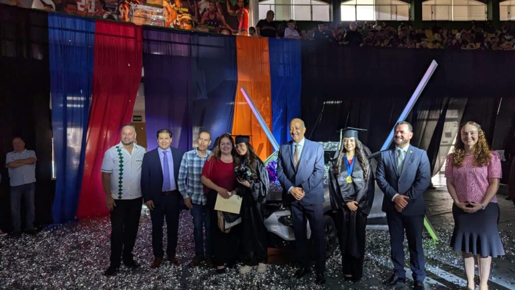 Ana Ibarra Chavira, alumna del Instituto Tecnológico de Ciudad Cuauhtémoc, ganó el sorteo de un vehículo último modelo. La entrega se realizó en la premiación a la generación de excelencia 2024-2025, que se llevó a cabo durante la mañana de éste viernes.