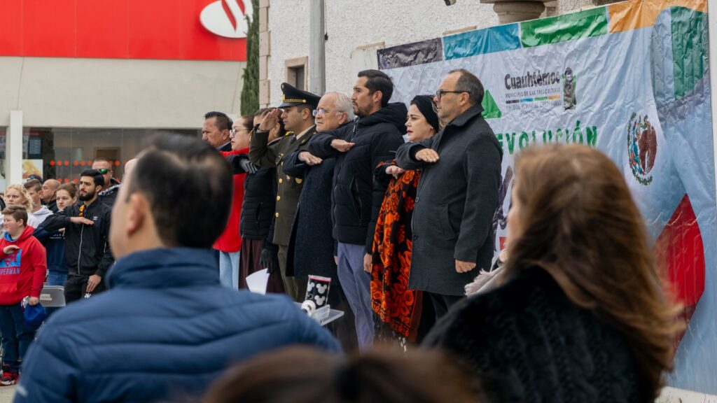 Los Honores a la Bandera se realizaron en punto de las 10 de la mañana, en la explanada de la Presidencia Municipal, con la dirección de la banda de guerra y escoltas del Centro de Bachillerato Tecnológico Agropecuario número 90. Elementos de la Dirección de Seguridad Pública Municipal se encargaron de izar la gran bandera en el asta.