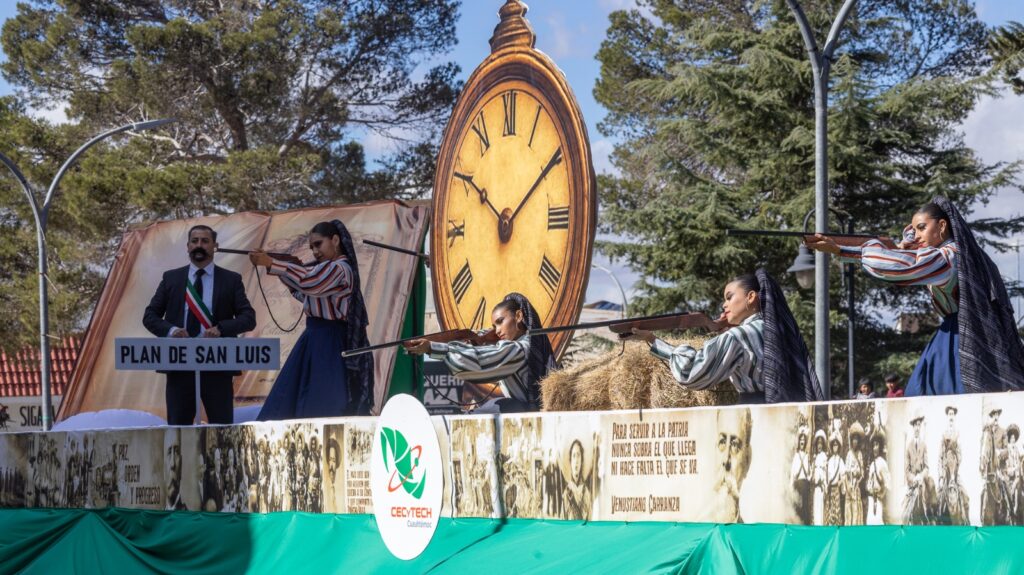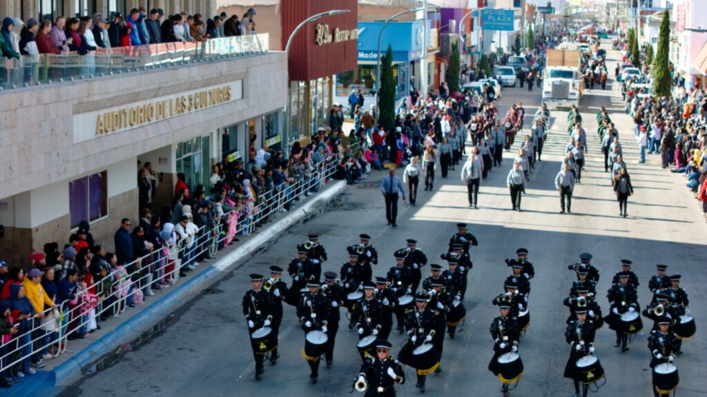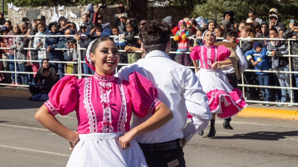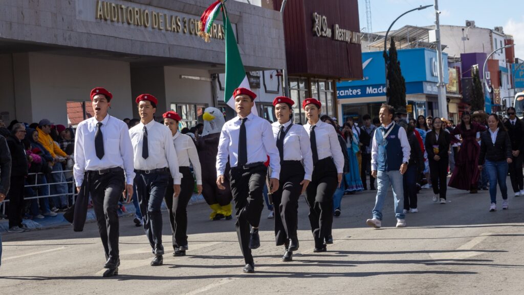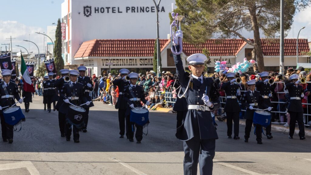 La presencia de escoltas; bandas de guerra; carros alegóricos; cuadros de gimnasia rítmica, bailables, y porra; estuvo a cargo del CBTa 90, Escuela de Enfermería del Ichisal, Cecytech, Universidad Tecnológica de Chihuahua, Centro de Estudios Especializados en Educación Superior, Conalep y Colegio Cuauhtémoc Bachillerato.