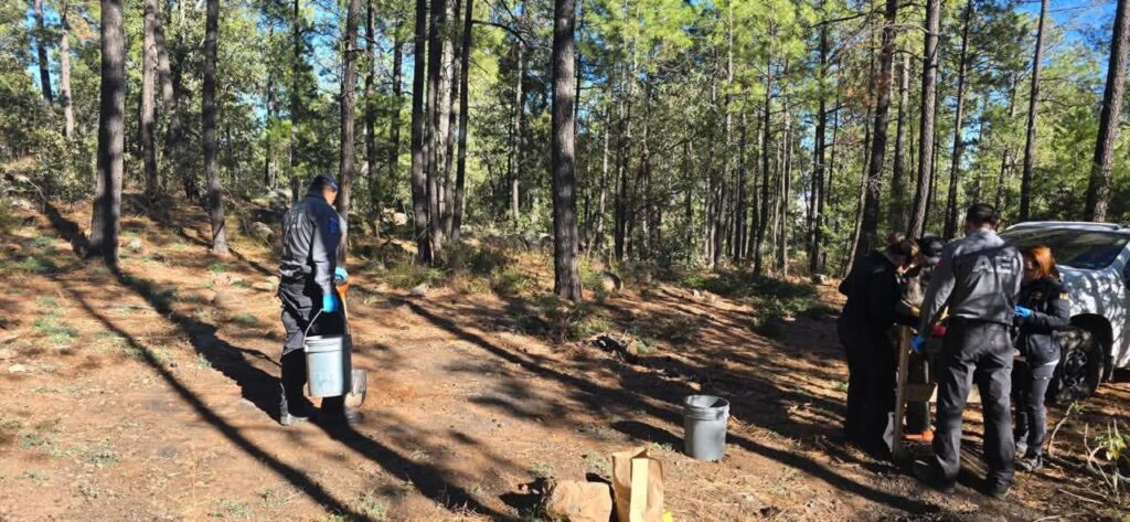 La Unidad de Investigación de Personas Desaparecidas y/o Ausentes de la Fiscalía de Distrito Zona Occidente, localizó fragmentos óseos y evidencias de interés criminalístico durante un rastreo efectuado en el lugar conocido como La Mesa de las Parras, municipio de Madera.