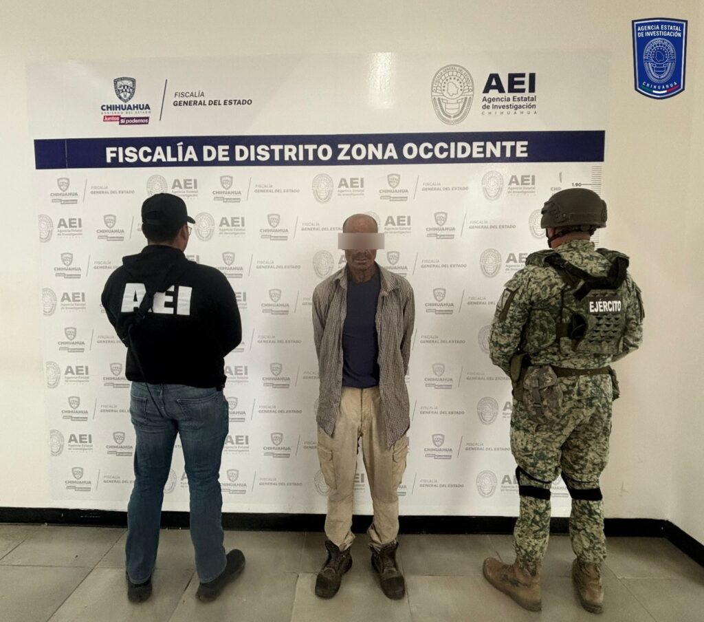 Elementos de la Agencia Estatal de Investigación y del Ejército Mexicano que participan en el Operativo Conjunto, detuvieron a un masculino identificado como David V. V., por delitos contra la salud, en la calle Xochimilco y 64 de la colonia PRI, en la ciudad de Cuauhtémoc.