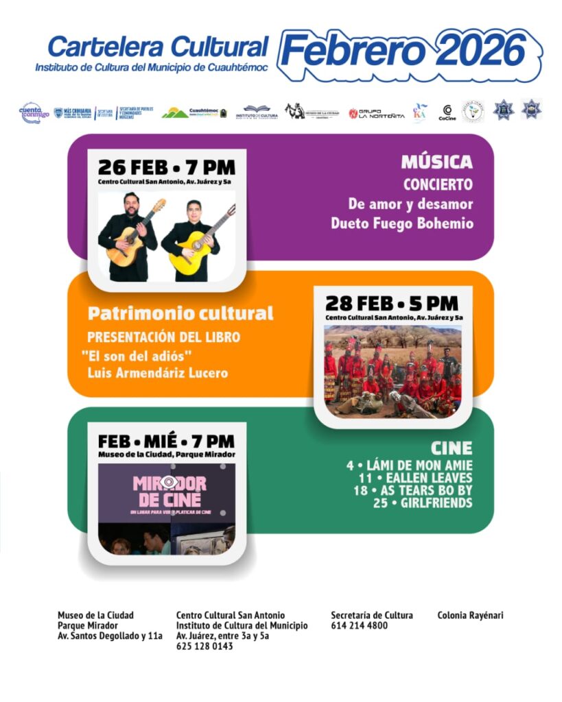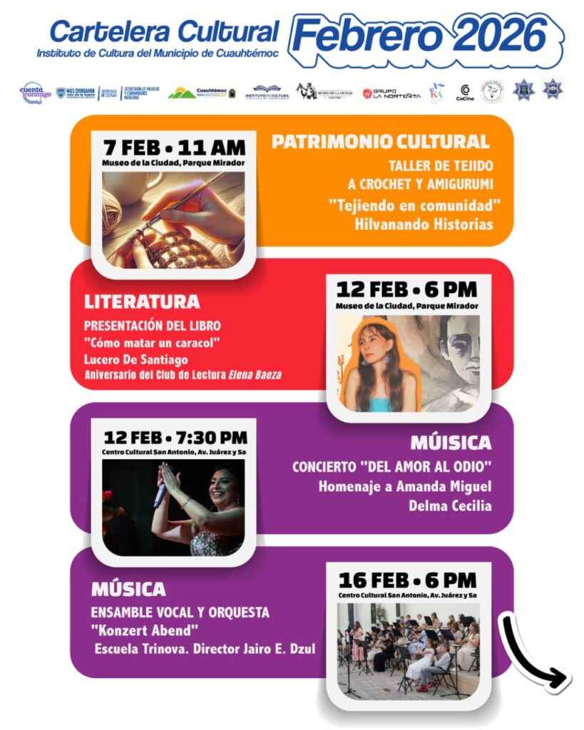 La Cartelera Cultural de Febrero 2026 llega con música, libros, cine y talleres para disfrutarse en compañía. Este mes, el amor también se celebra apoyando el talento local, nuestras tradiciones y el patrimonio que forma parte de lo que somos.