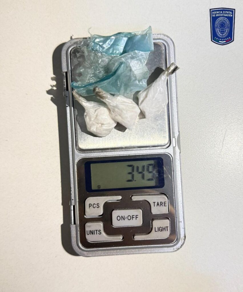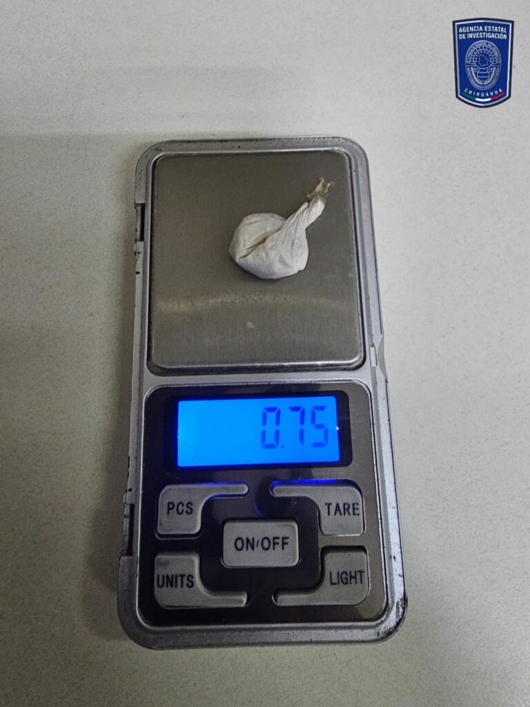 La primera intervención fue en las calles 9na y 16 de septiembre, en donde detuvieron a Joel H. M., persona de 23 años de edad, que traía entre sus pertenencias un envoltorio de plástico que contenía cristal con un peso de .73 gramos.