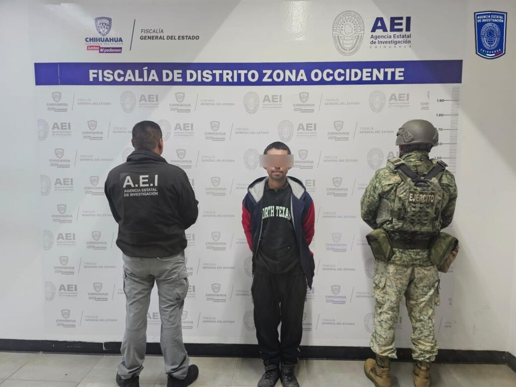 Elementos de la Agencia Estatal de Investigación y del Ejército Mexicano que participan en el Operativo Conjunto implementado en el seccional de Anáhuac, municipio de Cuauhtémoc, detuvieron a dos masculinos por posesión de droga.
