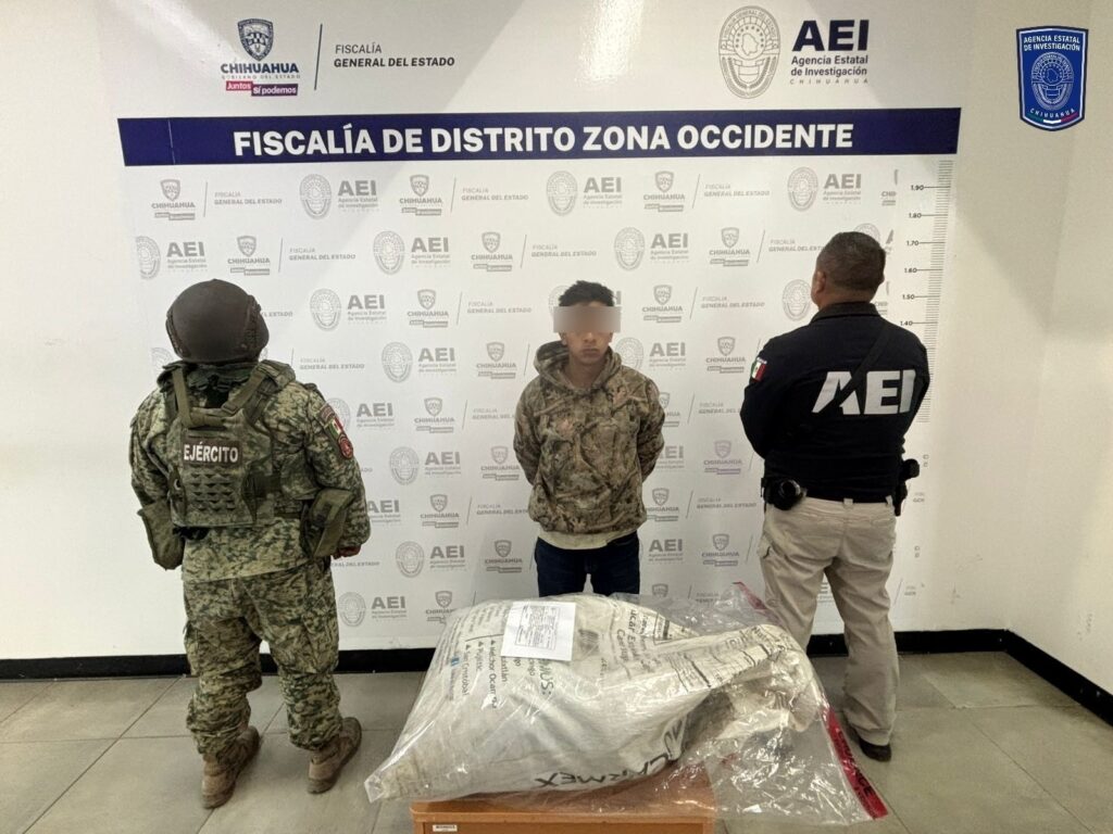 En otros hechos, los efectivos que participan en el Operativo Conjunto detuvieron por la carretera San Juanito a Basaseachi, en el municipio de Ocampo, a un masculino identificado como Giovanni B. H., de 28 años de edad a quien se le encontró en posesión de un costal con 4.88 kilogramos de mariguana.