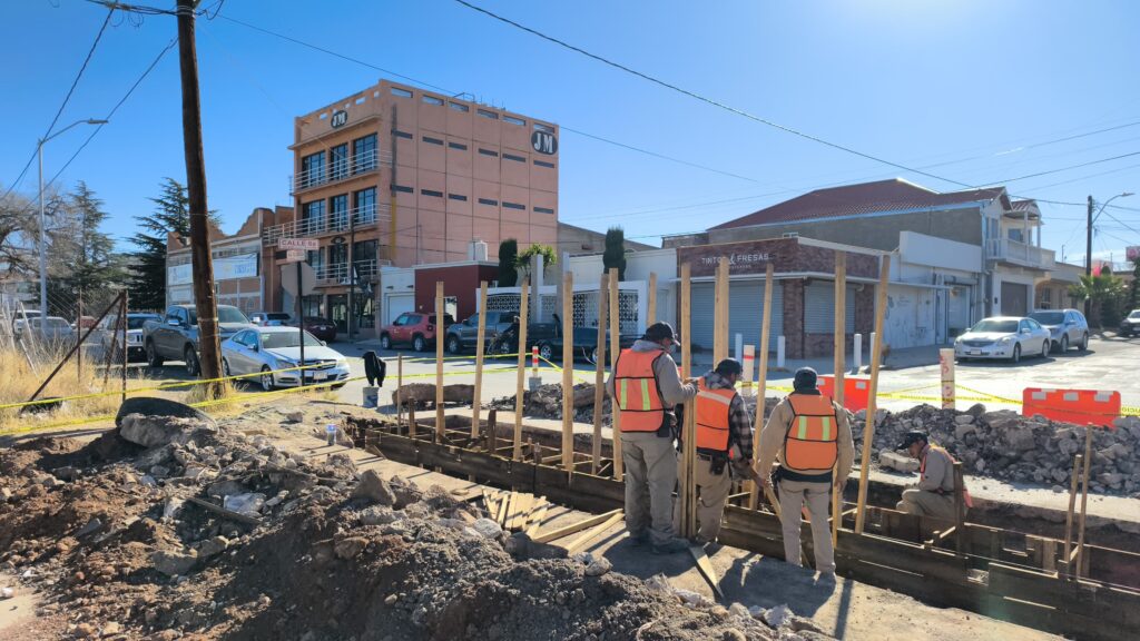 Actualmente, trabajan en los tramos de las calles Segunda y Ojinaga, y Sexta y Ojinaga, por lo que se solicita la comprensión de la población. En la Sexta se colocó una estructura de madera, este jueves se realizará el colado de cemento, y se espera que en 15 días queden terminadas las acciones.