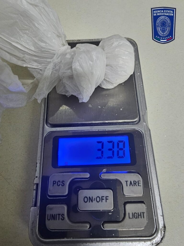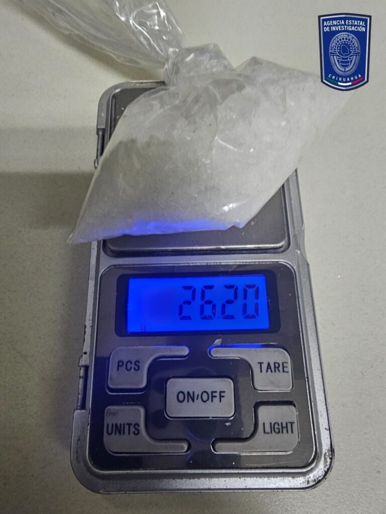En el lugar se detuvo a Antonio G. R., de 42 años de edad, a quien se le encontró en posesión de un envoltorio de plástico transparente que contenía una sustancia granulosa y cristalina, que dio un peso de 26.20 gramos de cristal.